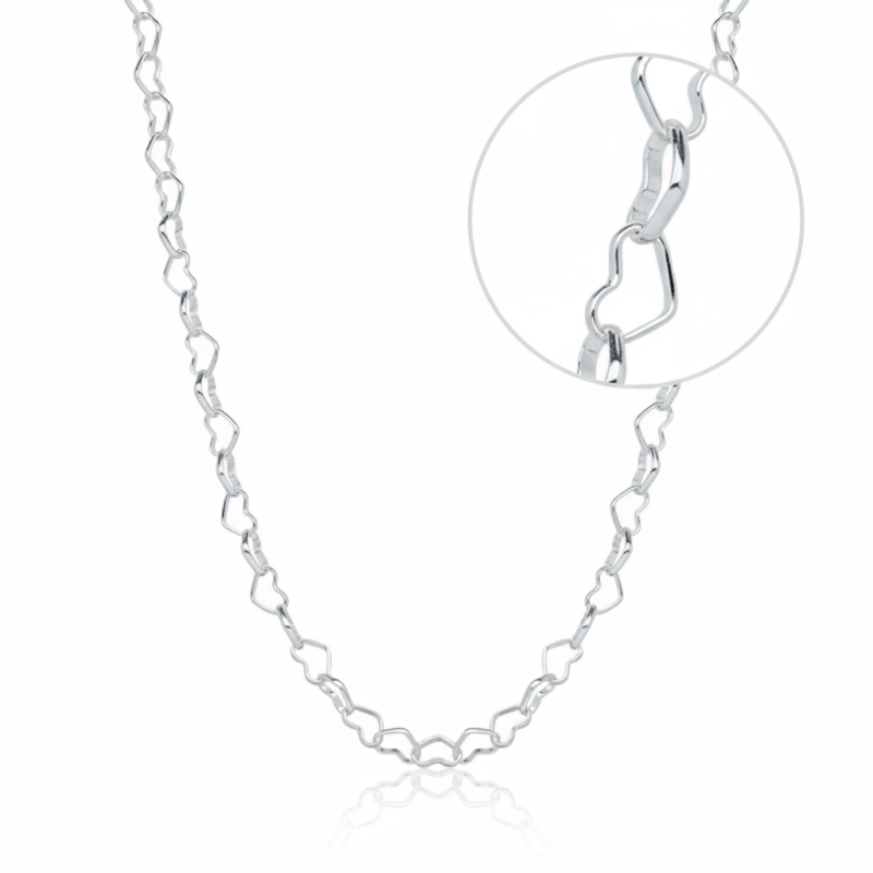 - Nome do Produto: Corrente Malha Coraçãozinho de 45cm em Prata