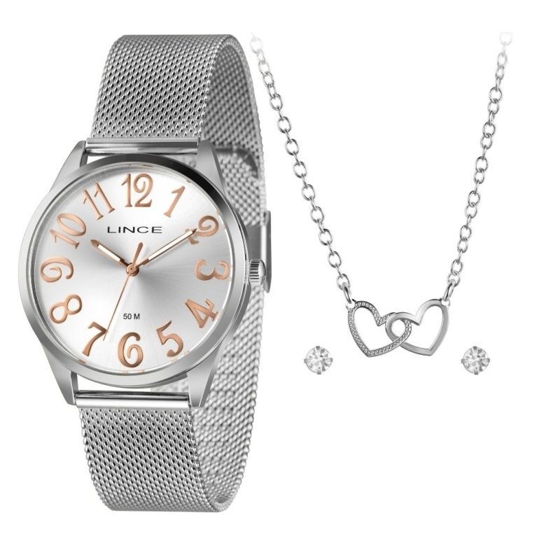 Características: com caixa prata e pulseira em mesh