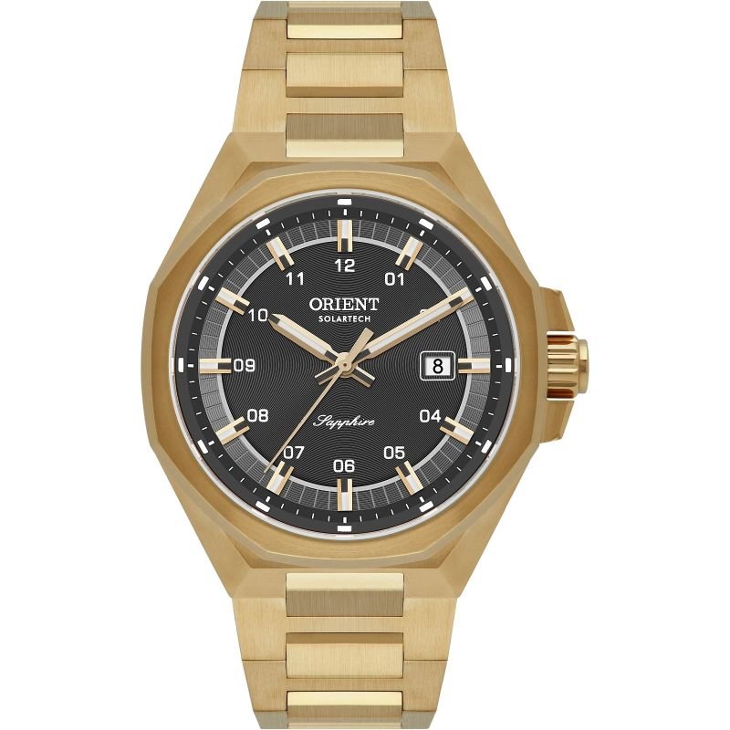 Deixe que o seu relógio fale por você. Escolha a presença inabalável do Orient SolarTech Dourado.